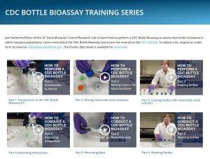 Join Katherine Brisco of the UC Davis Mosquito Control Research Lab to learn how to perform a CDC Bottle Bioassay to assess insecticide resistance in adult mosquito populations. Learn more about the CDC Bottle Bioassay and access the manual on the CDC website. To obtain a kit, request an order form by email to USbottleassaykit@cdc.gov. The PacVec data sheet is available for download. View videos here.